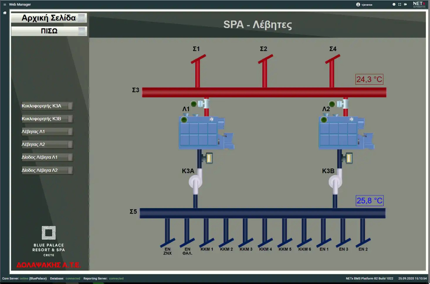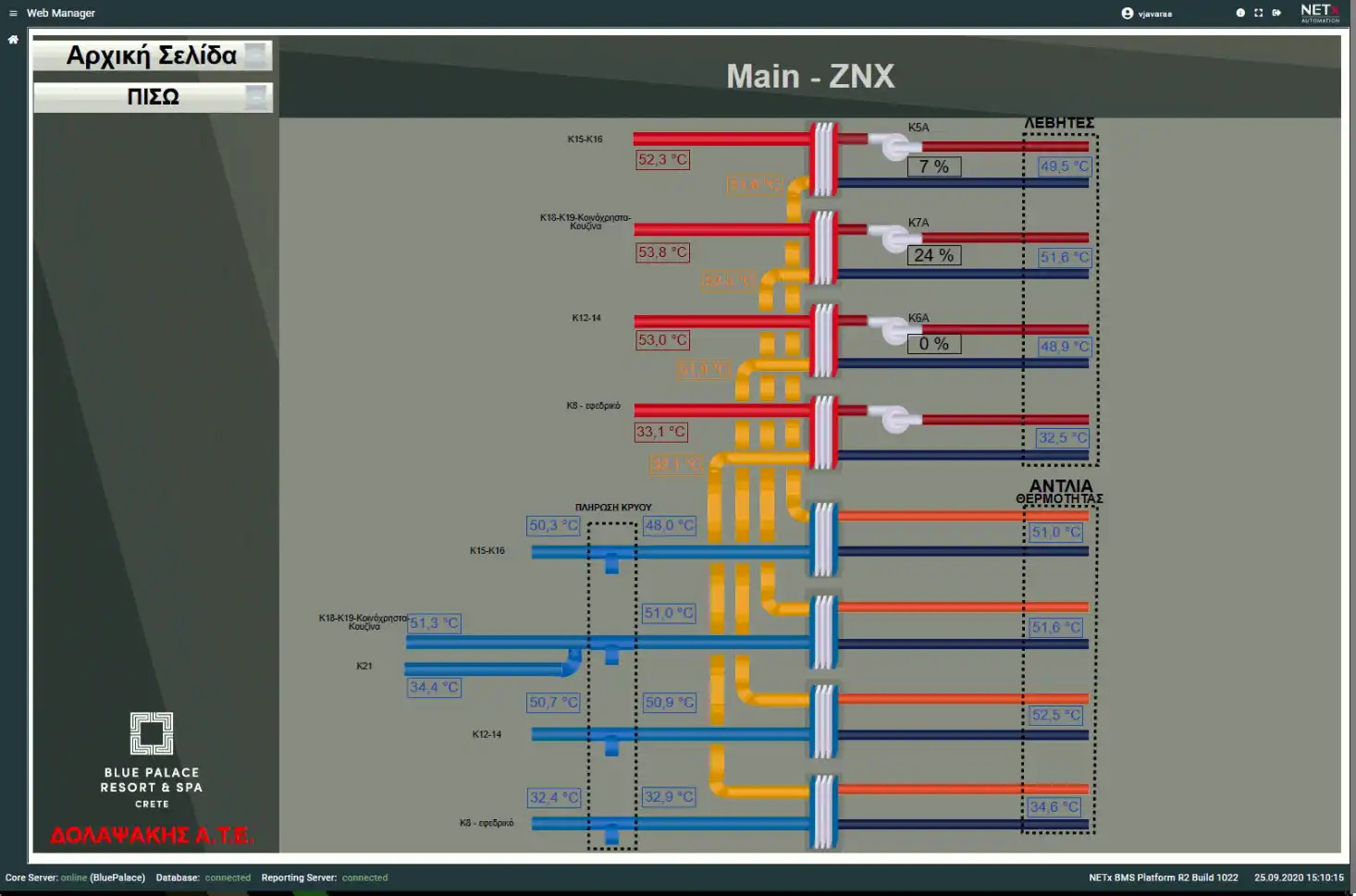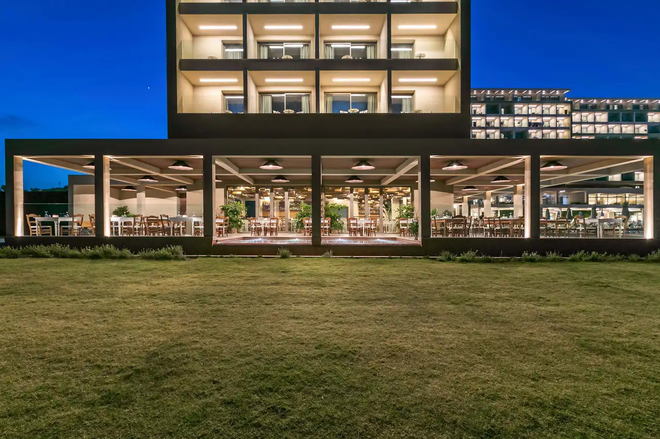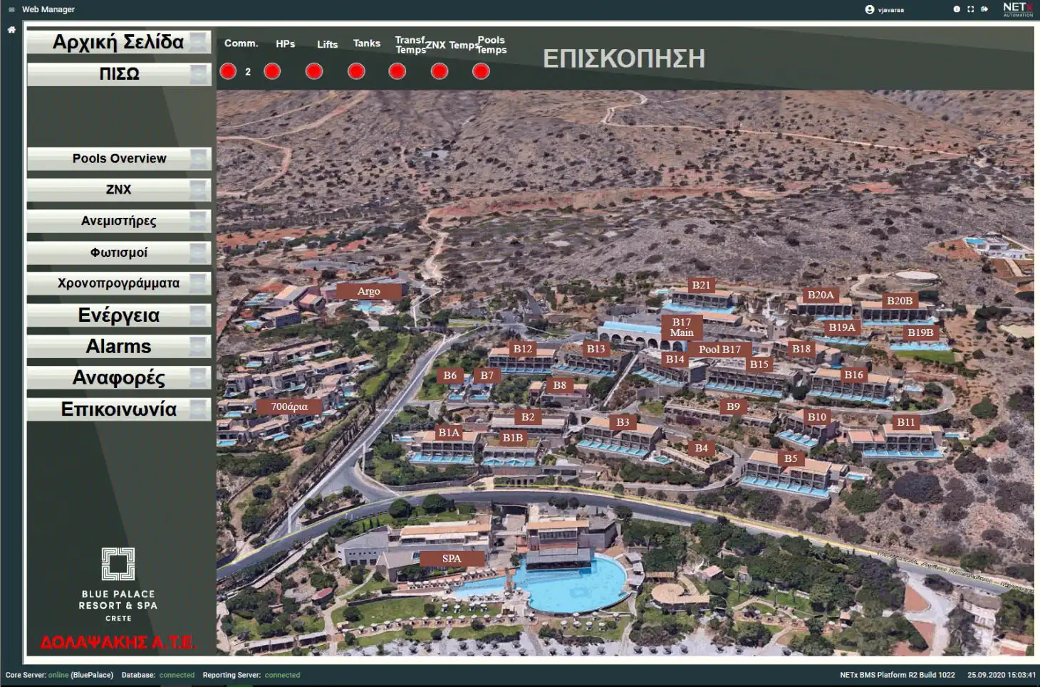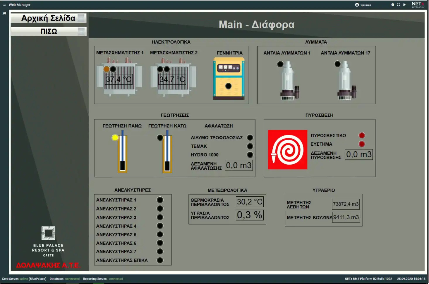 Blue Palace, a 5-star hotel in Elounda, now features a modernized Building Management System (BMS) with 69 M241 PLCs from Schneider Electric, communicating via Modbus/TCP. The outdated system, with faulty devices and sensors, was replaced, and heat pumps were integrated using Modbus/Serial.