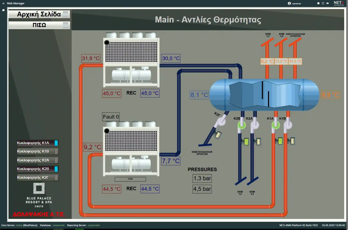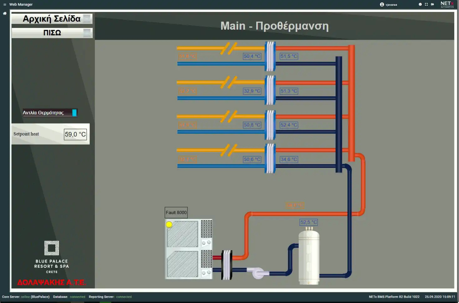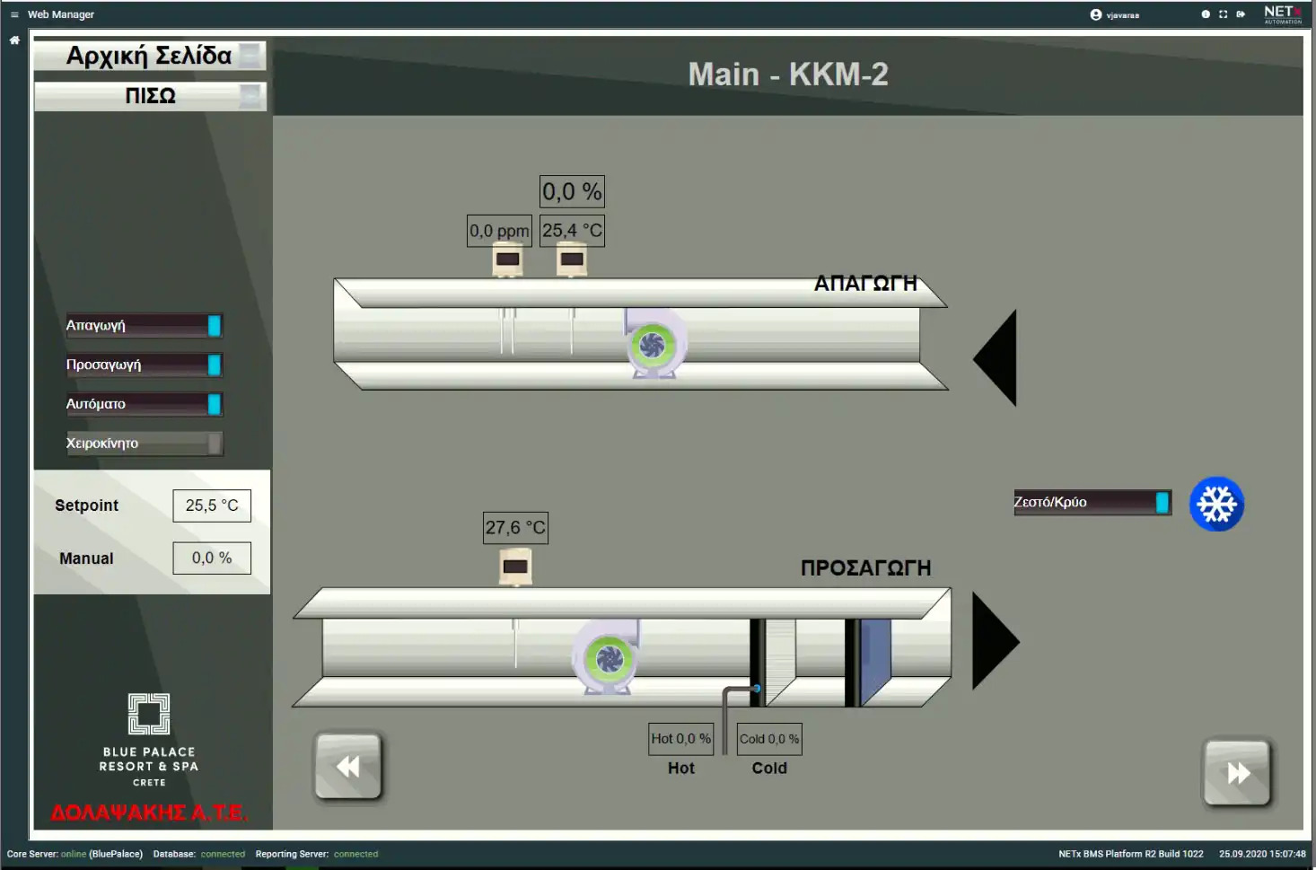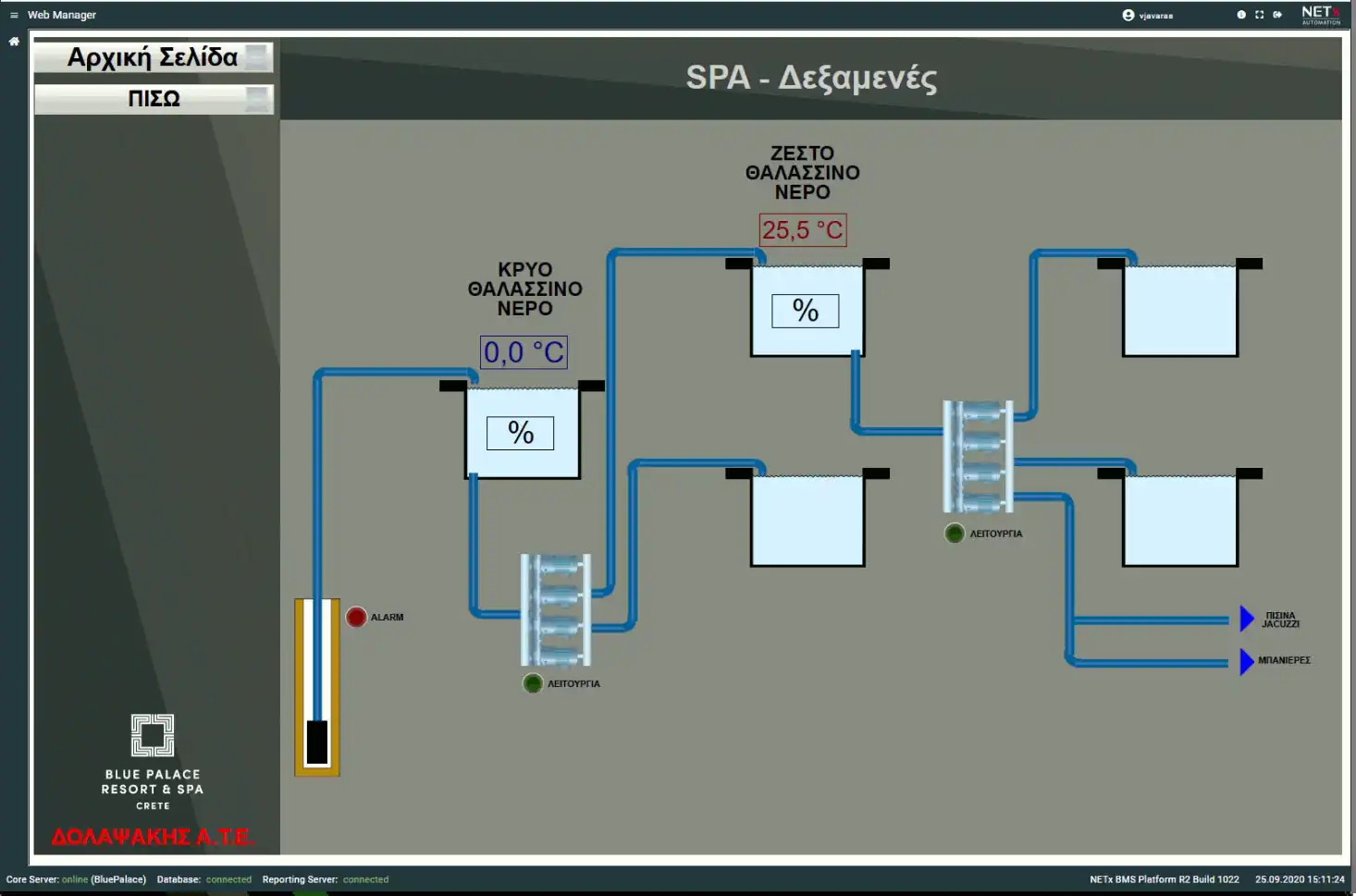 Blue Palace, a 5-star hotel in Elounda, now features a modernized Building Management System (BMS) with 69 M241 PLCs from Schneider Electric, communicating via Modbus/TCP. The outdated system, with faulty devices and sensors, was replaced, and heat pumps were integrated using Modbus/Serial.