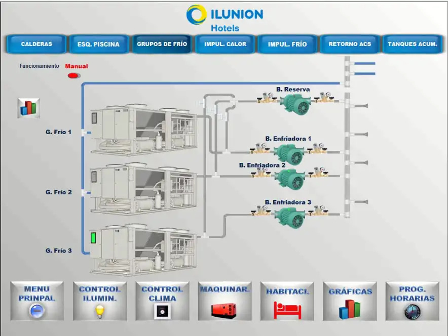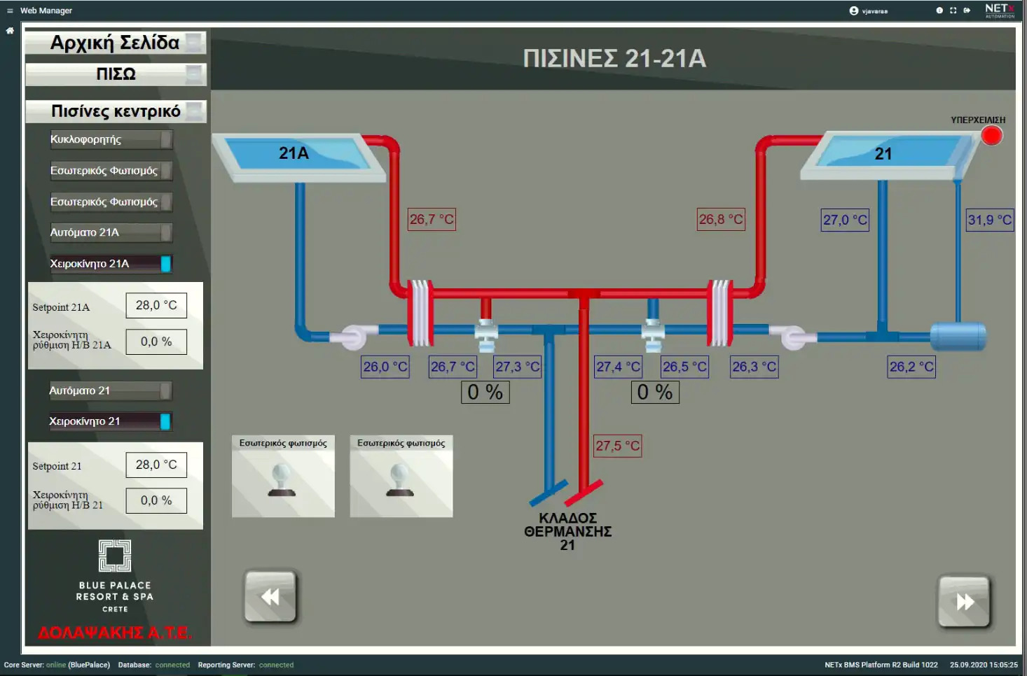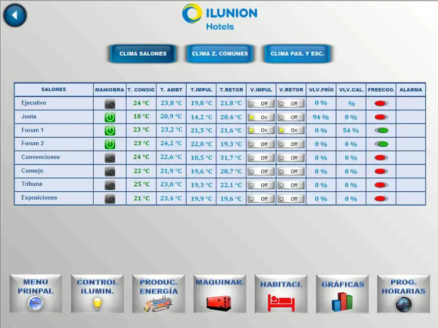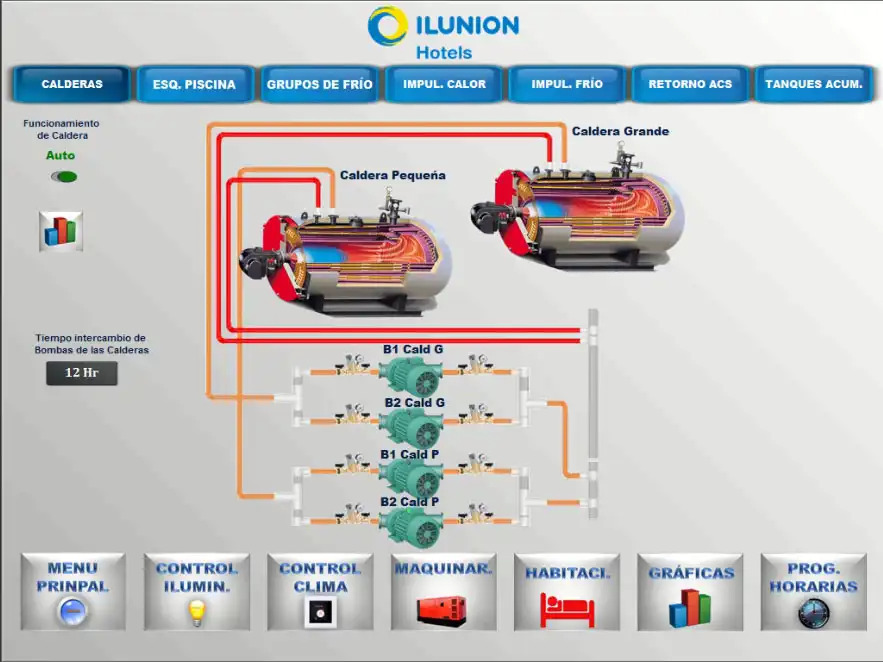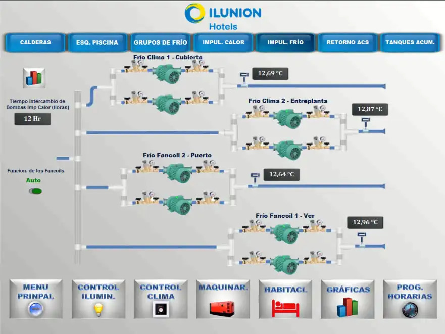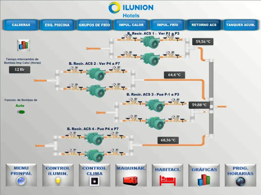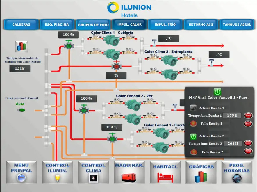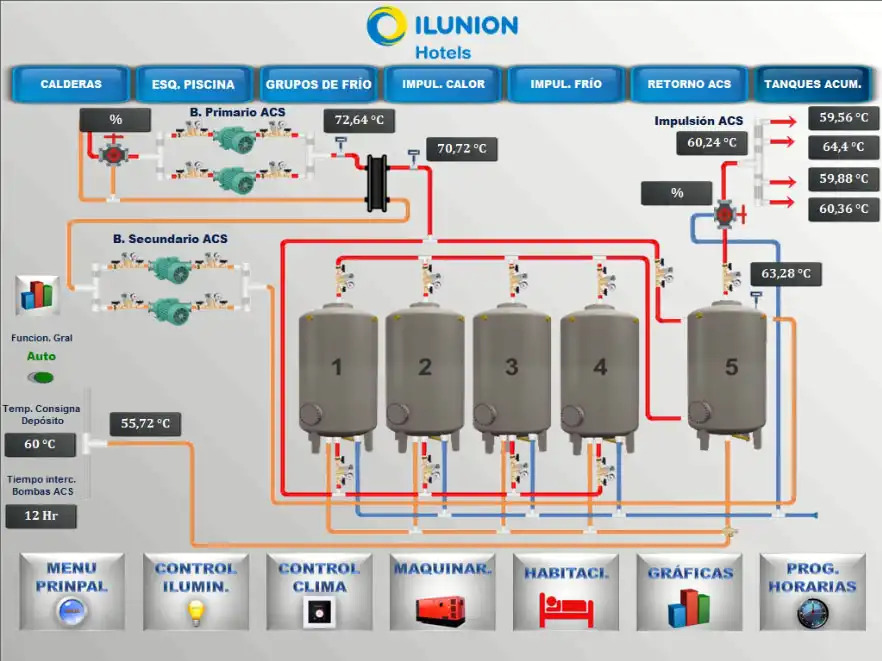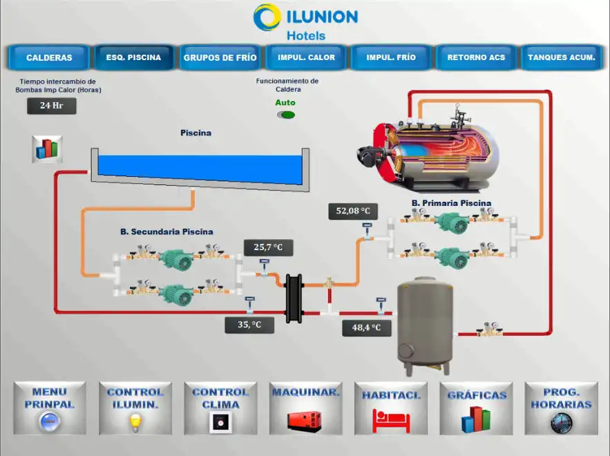 The upgraded BMS provides full control and monitoring of mechanical equipment, real-time temperature tracking for heated pools with alarms for low temperatures, and management of external lighting and domestic hot water supply. Scheduled control of lighting and HVAC systems ensures efficiency and enhances the guest experience.