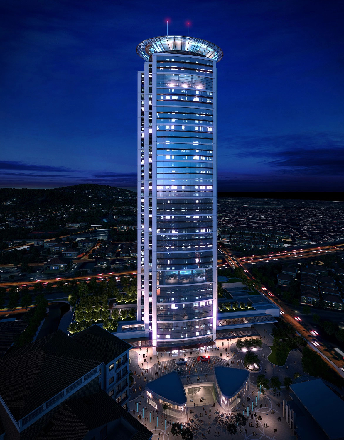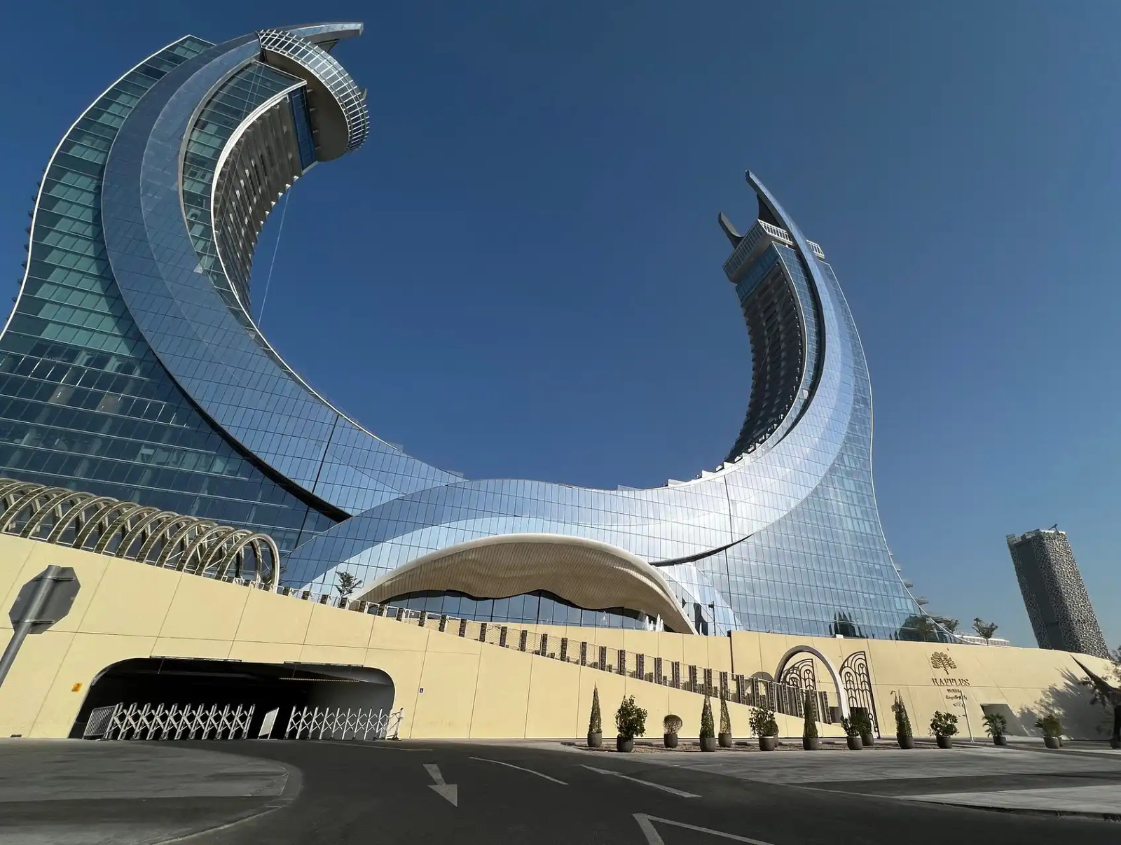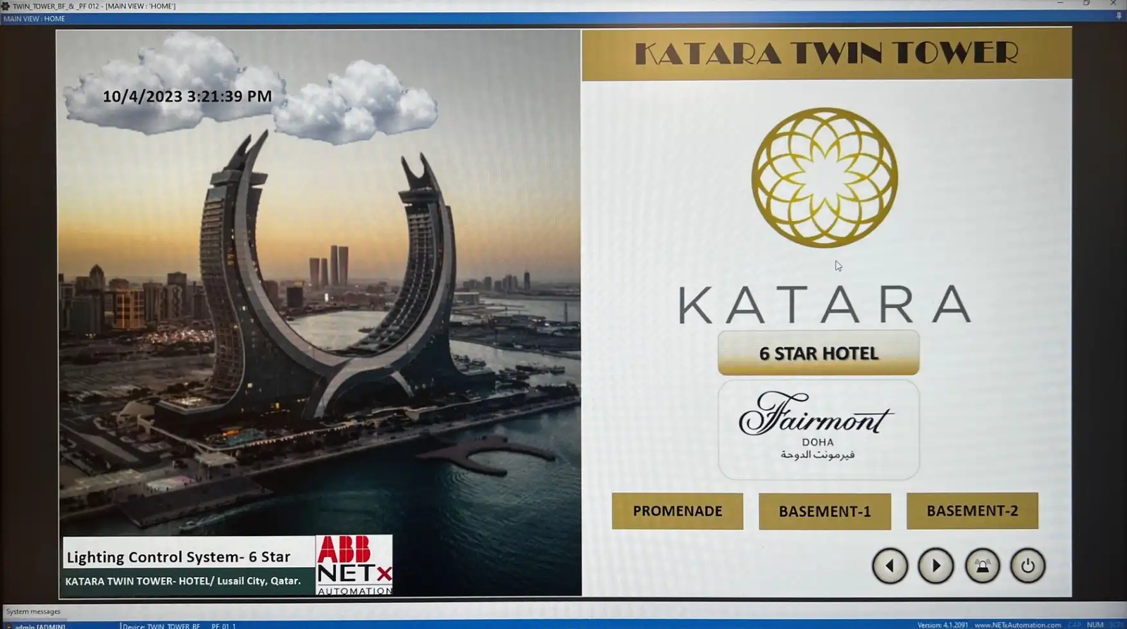 The 211-meter-high crescent building, inspired by Qatar's national emblem of two crossed scimitars, features 542 rooms and 49 apartments across 36 floors with full amenities. To support its operations, the Enterprise version of our BMS Platform, handling up to 20,000 datapoints, and the LaMPS module for lighting management were implemented. A main-backup system ensures seamless operation by enabling the backup server to take over if the main server connection fails.