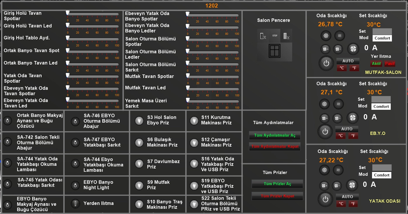 - Devices: 400+ - KNX switches acutators, dimmers, FCU controllers, blind actuators, DALI gateways, DMX controllers, Modbus PLC and input/output modules, Glass KNX switches and thermostat devices, sensors