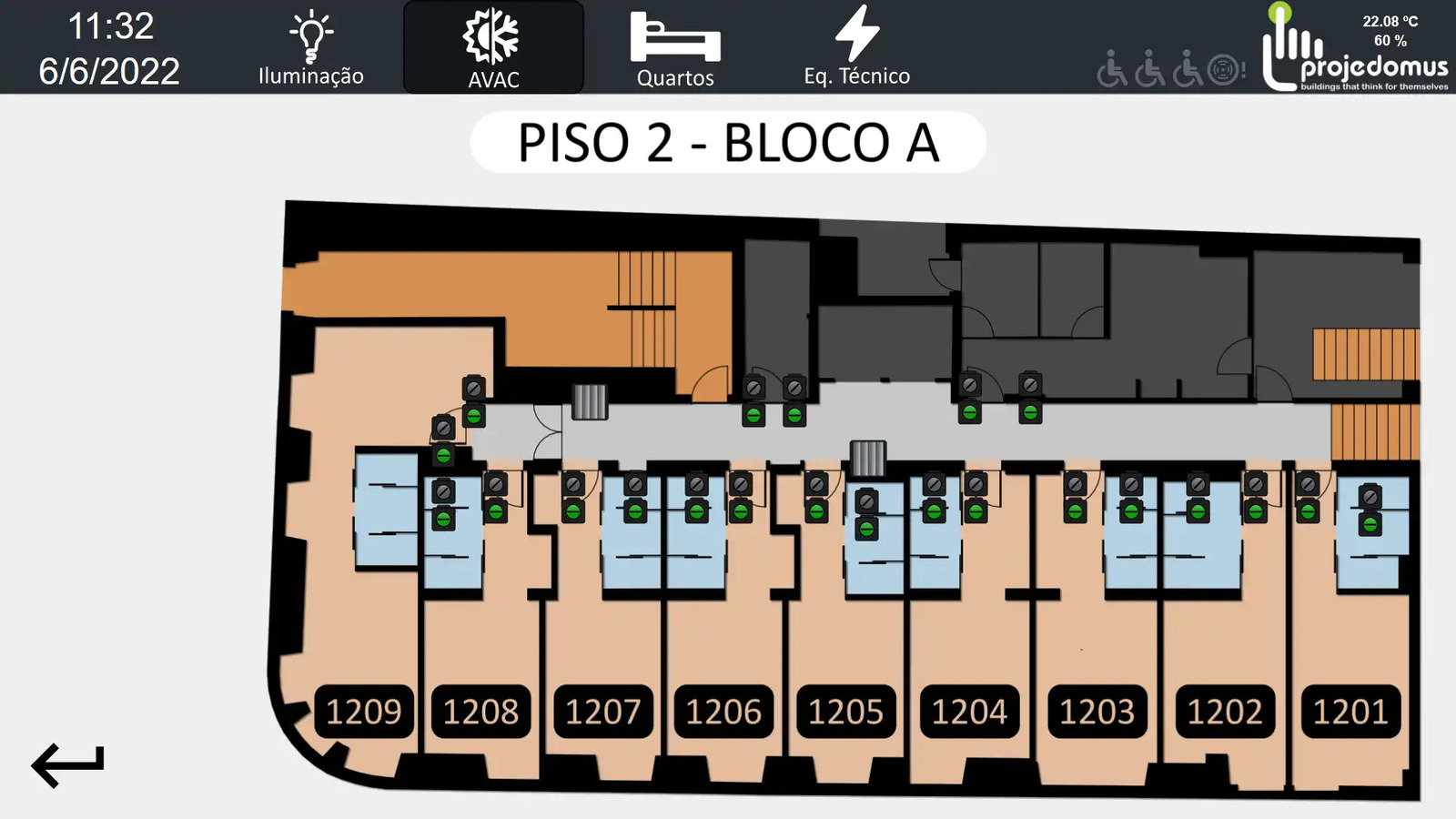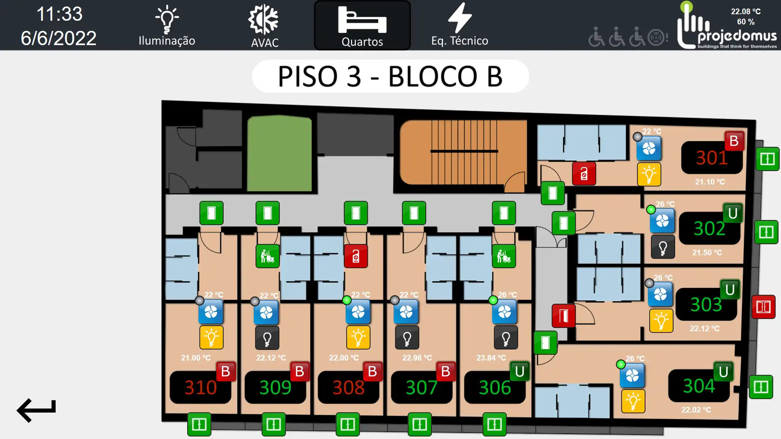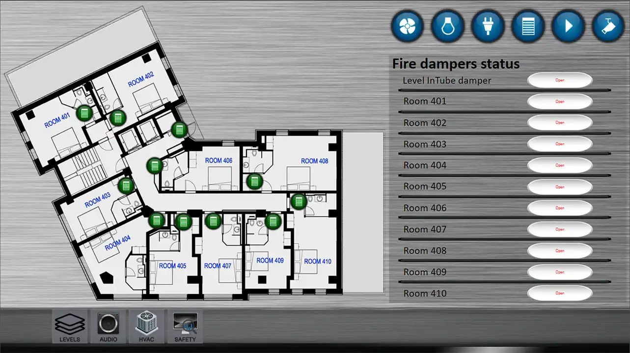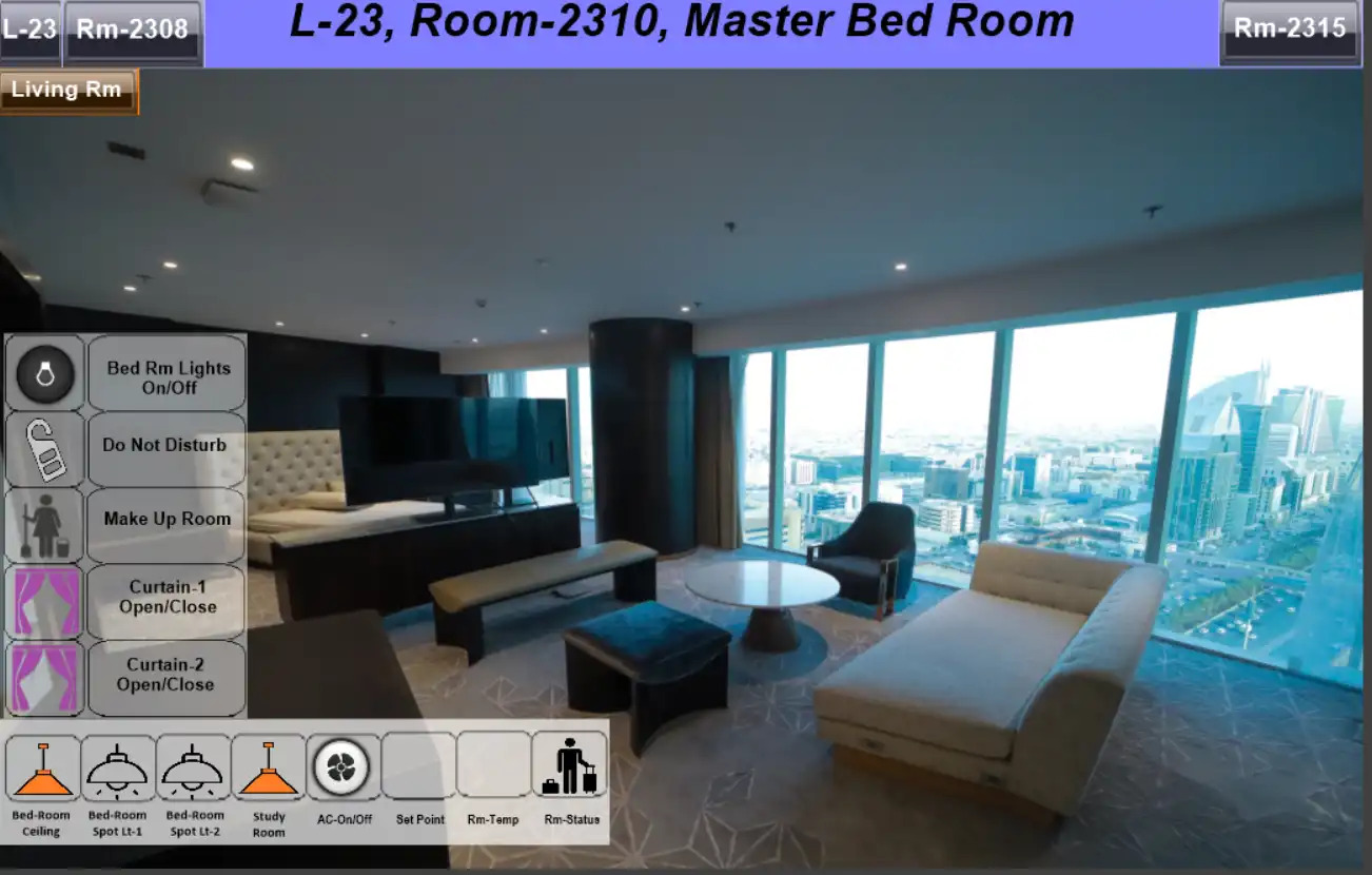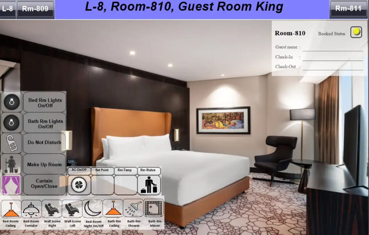 Automation is integrated throughout all rooms and common areas. Using the HDL GRMS Buspro system, controls are centrally managed and monitored via the BMS system in collaboration with NETxAutomation. Room automation includes lighting, FCU and VRF controls, as well as DND/MUR systems, all powered by HDL Buspro technology.