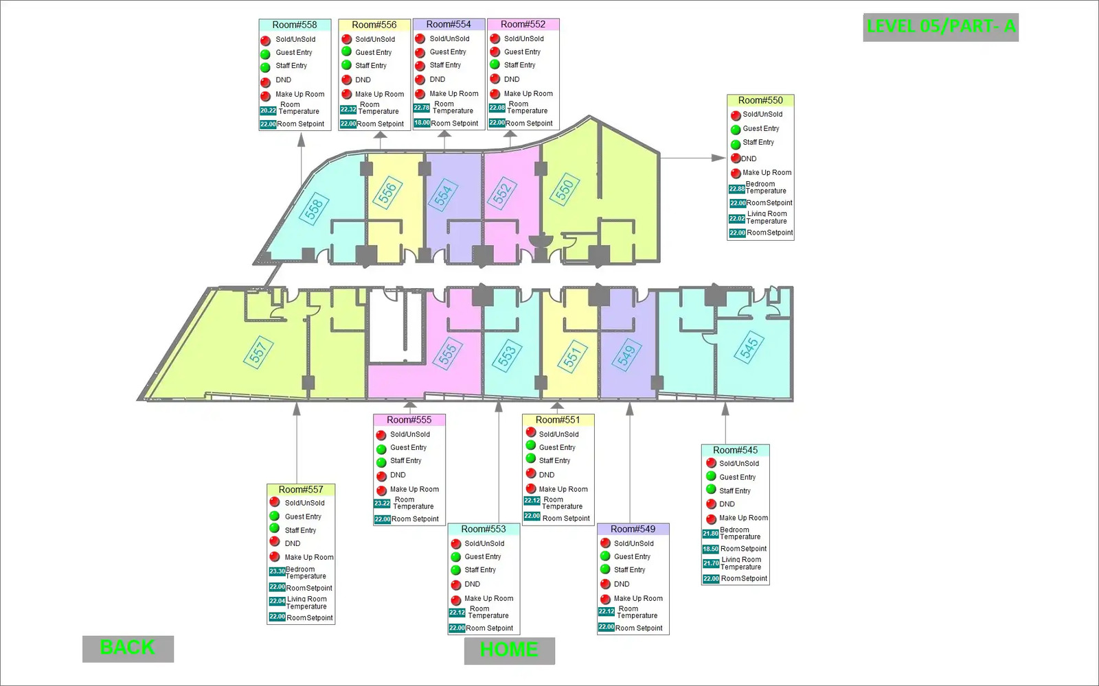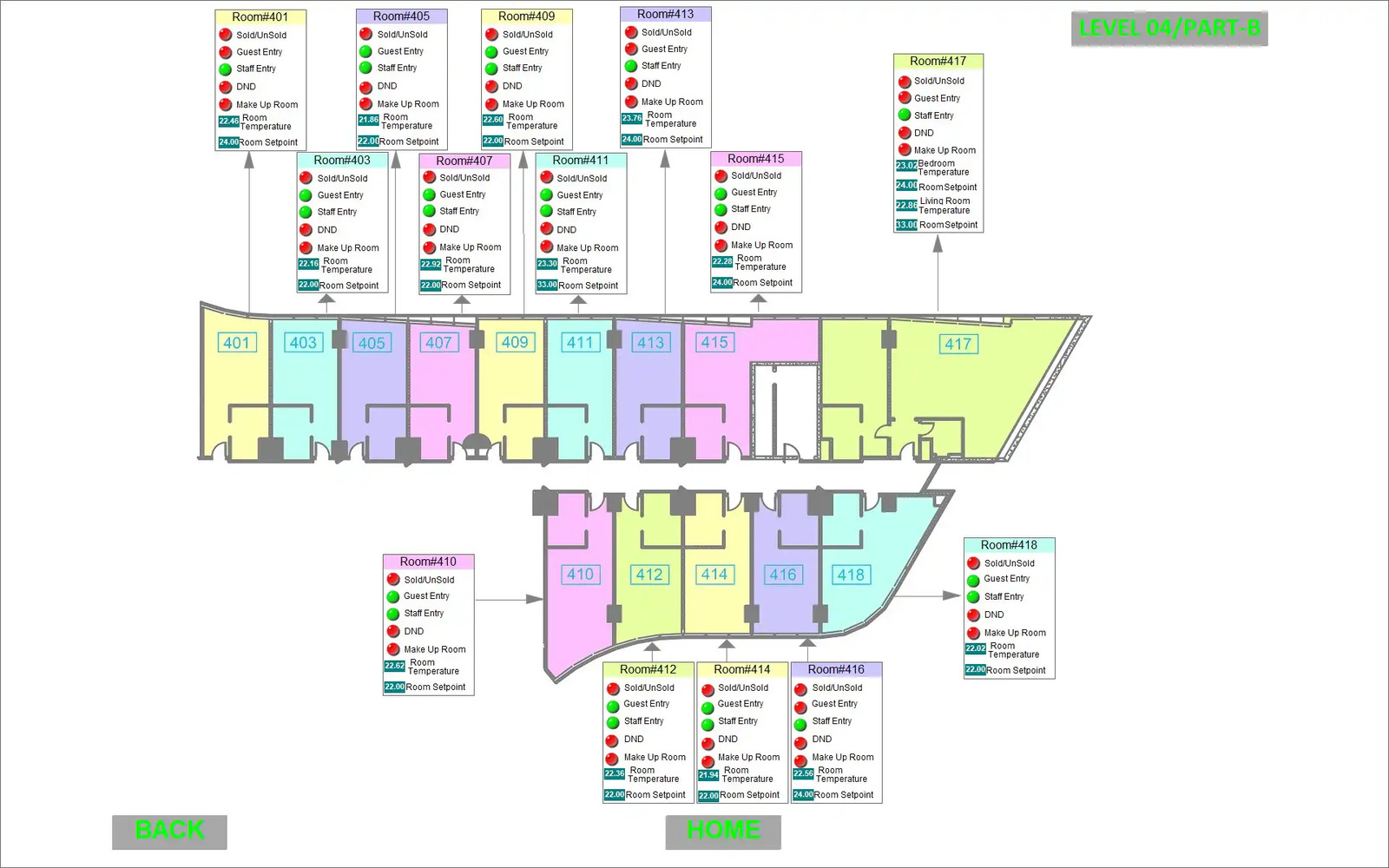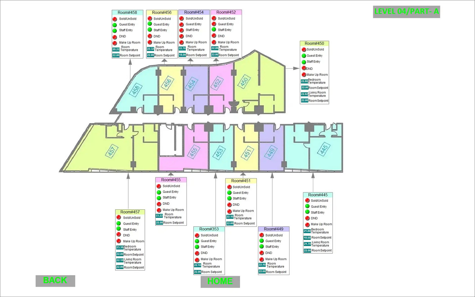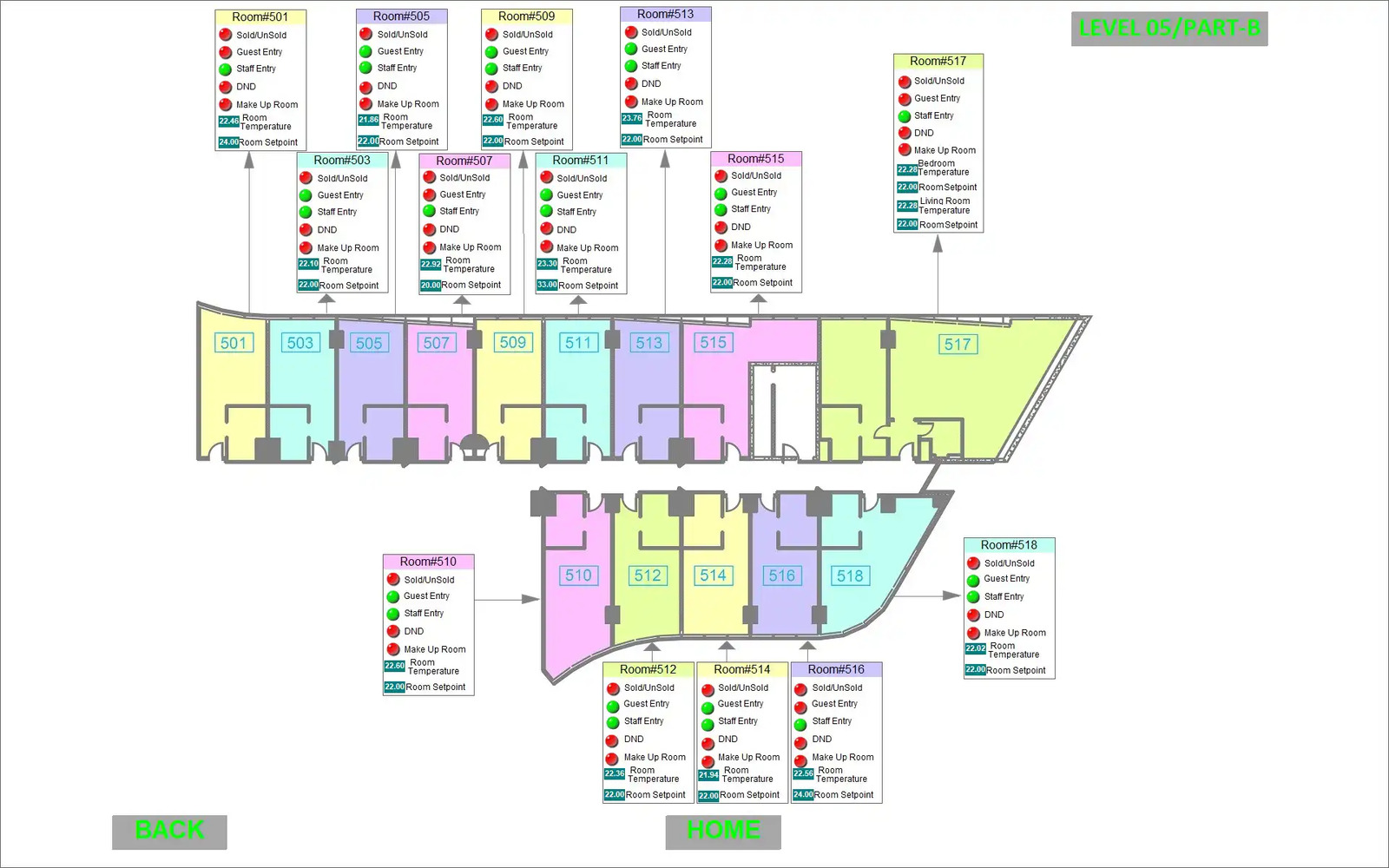 Automation is integrated throughout all rooms and common areas. Using the HDL GRMS Buspro system, controls are centrally managed and monitored via the BMS system in collaboration with NETxAutomation. Room automation includes lighting, FCU and VRF controls, as well as DND/MUR systems, all powered by HDL Buspro technology.