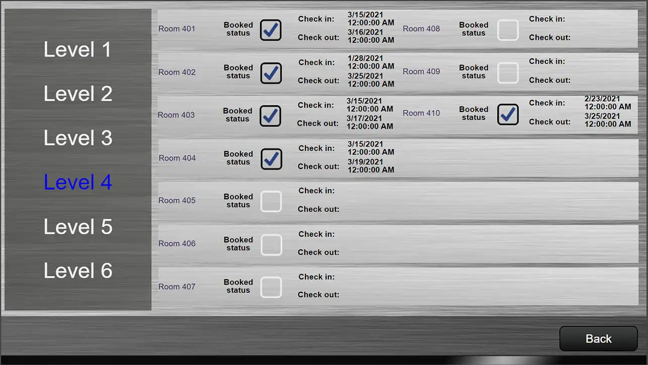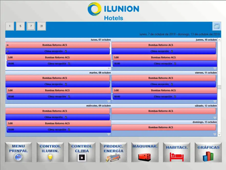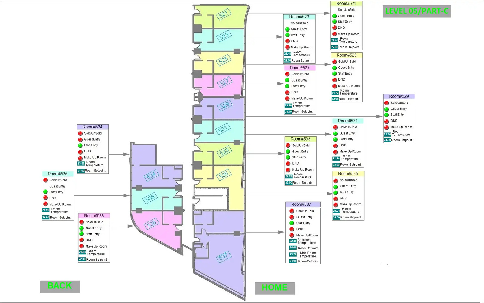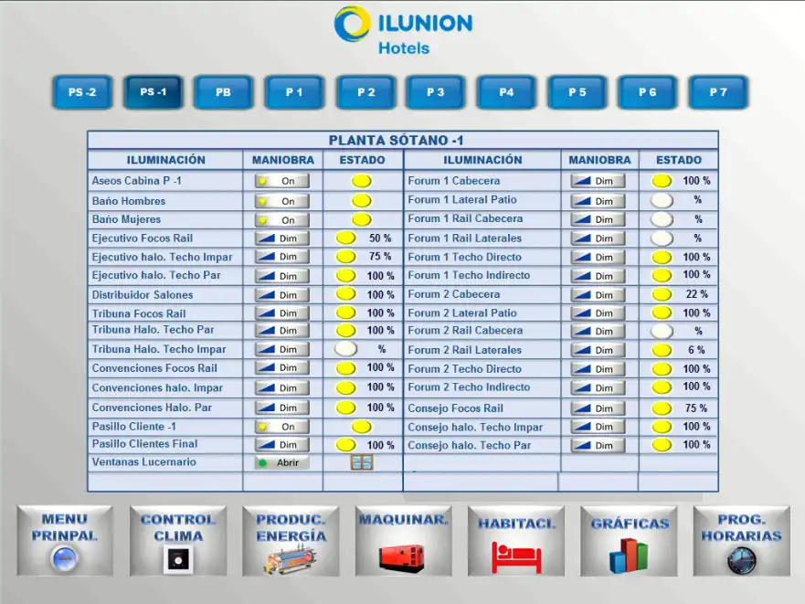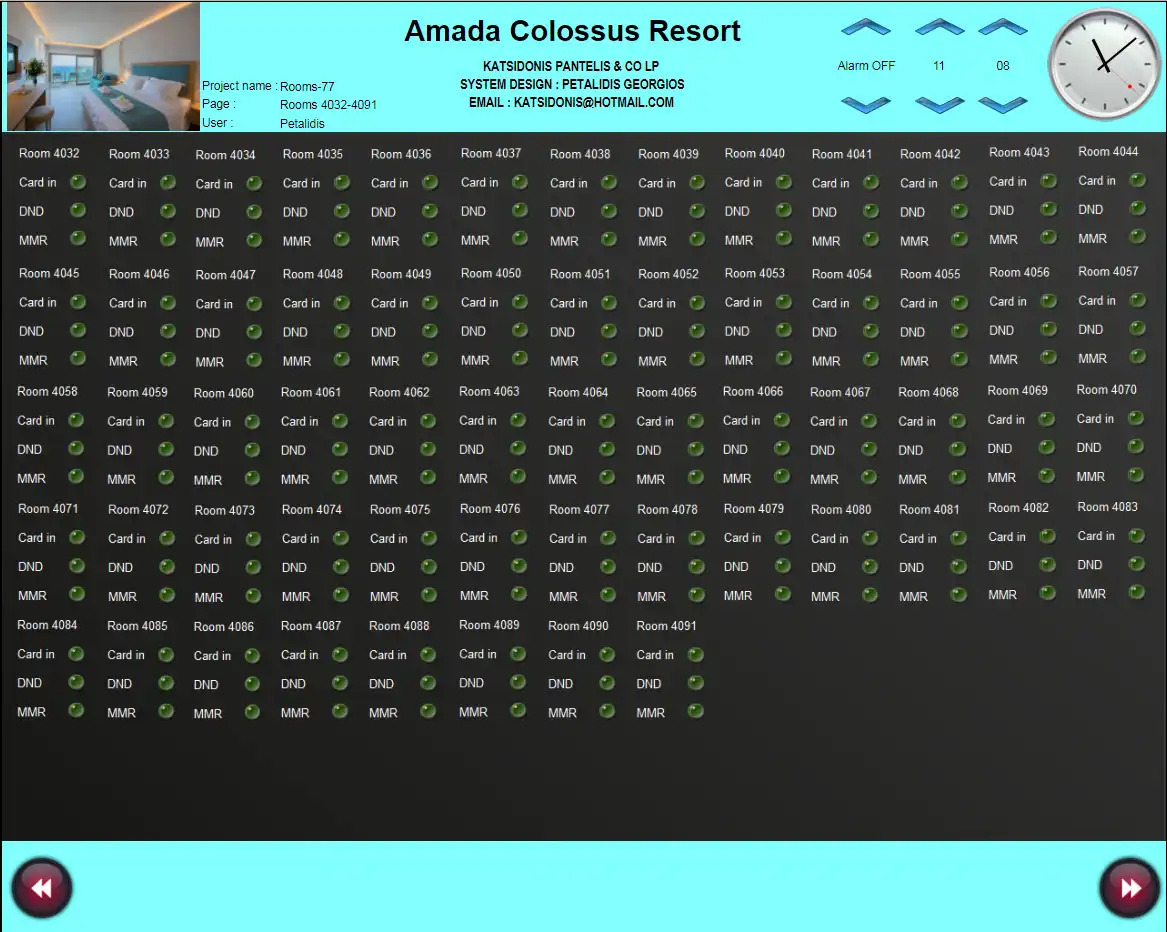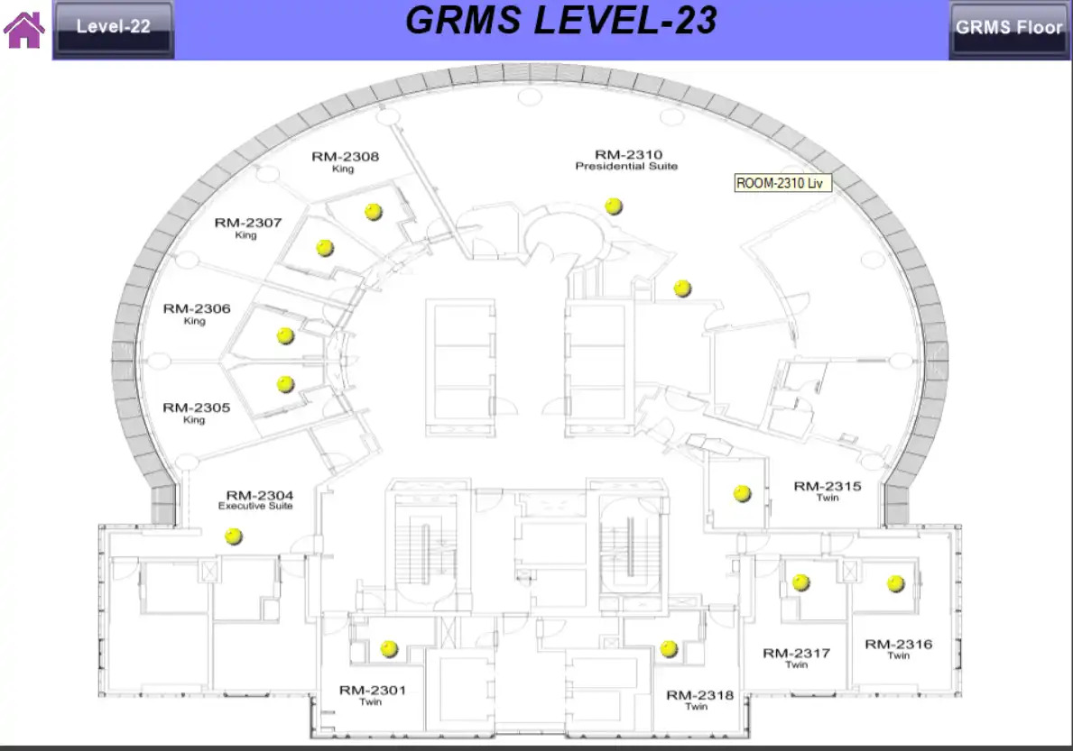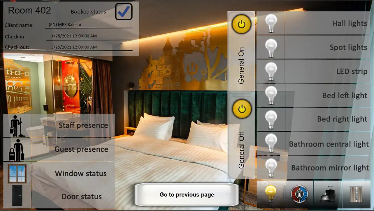 - Visualization: 3 types of visualization - 5 clients with full system, 60 for guest rooms and 10 for staff with different rights