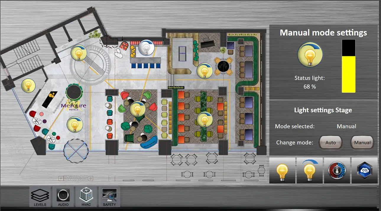 - KNX light dimming system is used in public areas, hallways, lobbies, meeting rooms and large halls