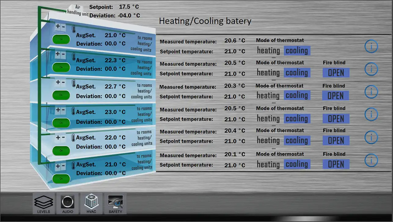 - Devices: 10+ - BACnet IP DDC controllers with extension I/O modules and additional Modbus RTU communication modules