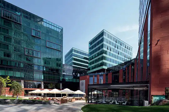 This project integrates protocols like KNX, Modbus, BACnet, and M-Bus. The complex features its own electrical, heating, and energy production, allowing energy to be used internally or sold, depending on market prices. The NETx BMS Server ensures centralized control, managing production and consumption while initiating energy-saving modes by shutting down non-vital systems during excessive consumption. Critical events are monitored and predicted through constant online tracking.