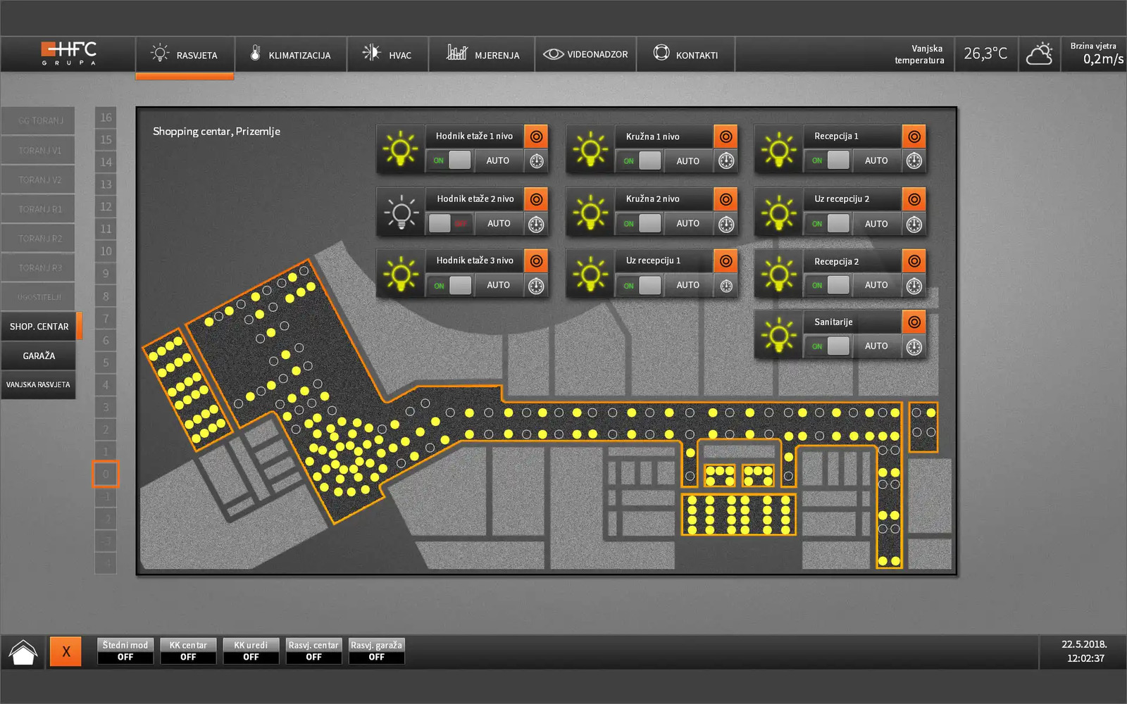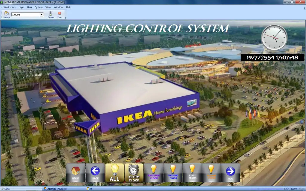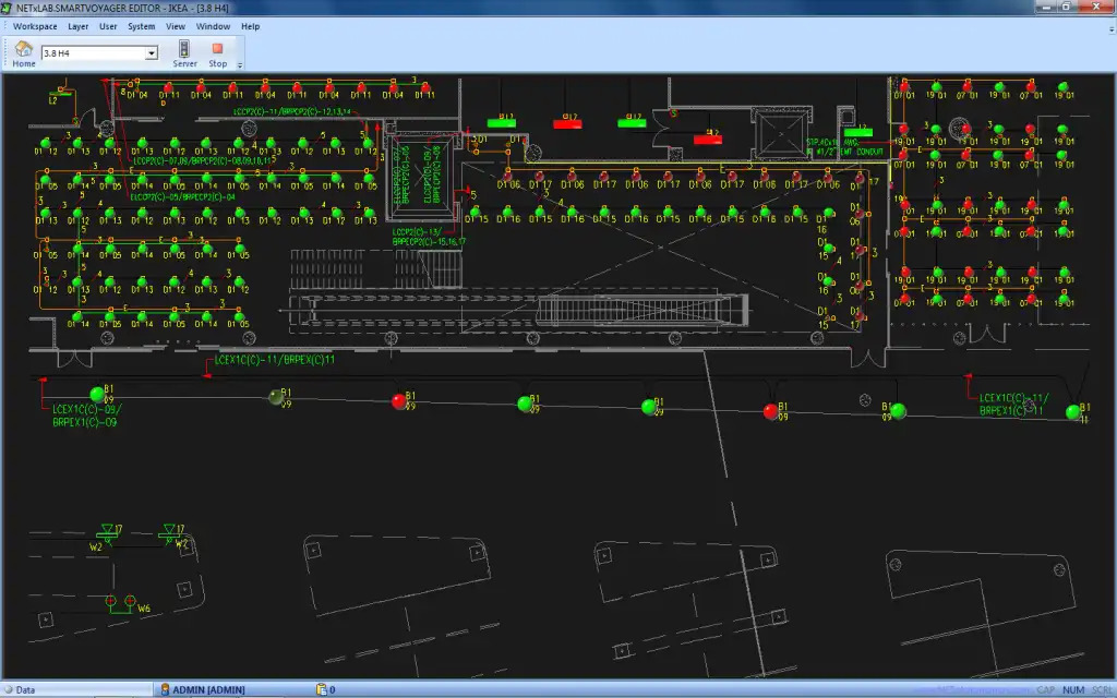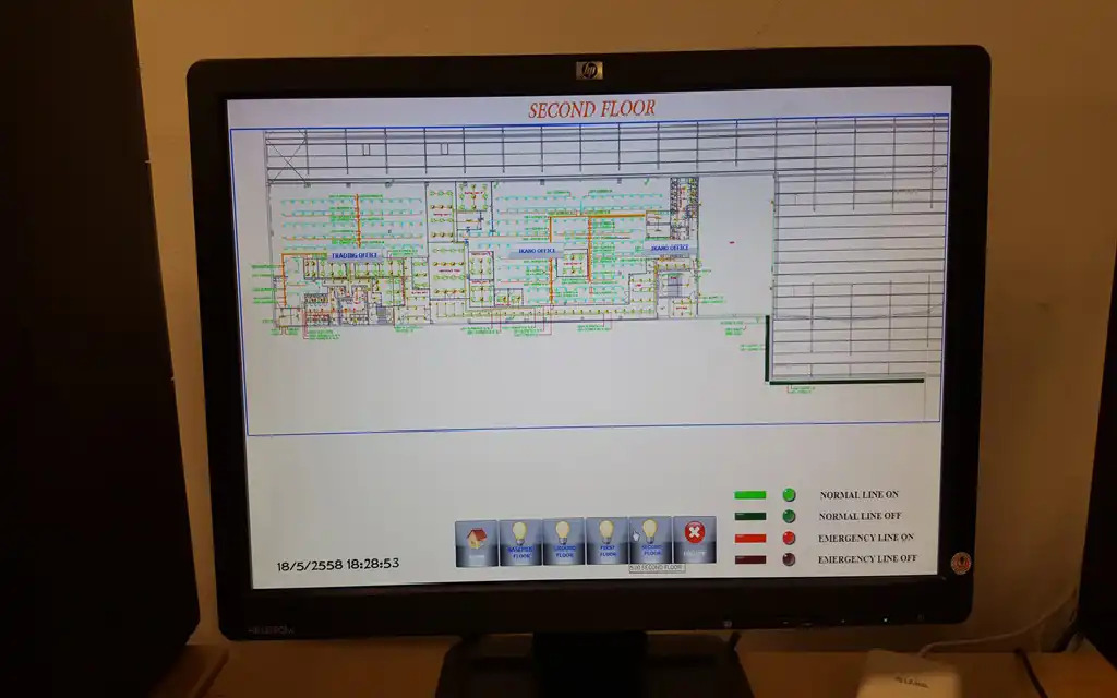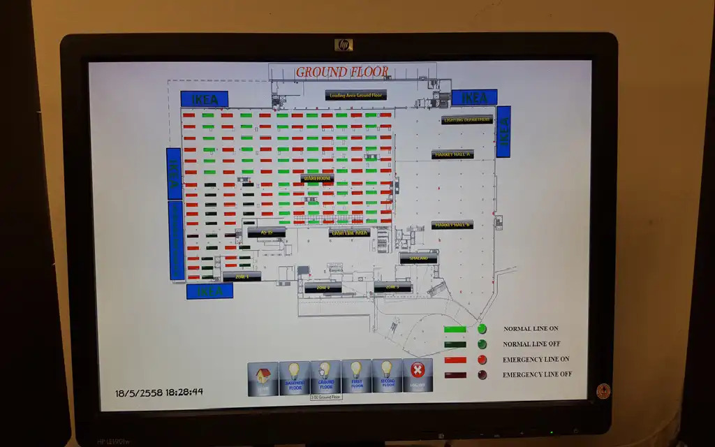 The visualization includes 10,000 elements spread over 95 pages, ensuring comprehensive monitoring and control of all systems. Focused primarily on lighting, the setup enables efficient and intelligent management across the facility.
