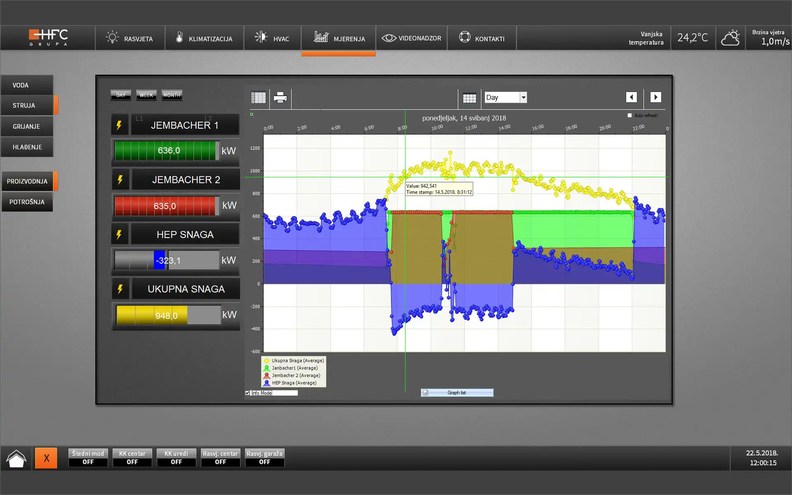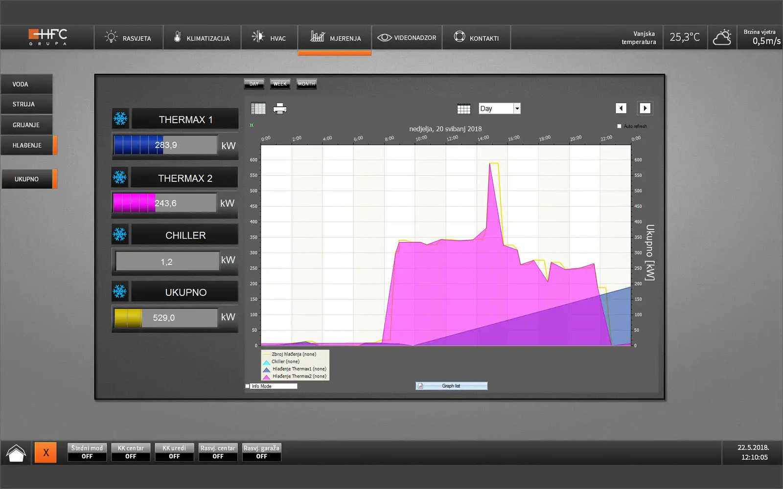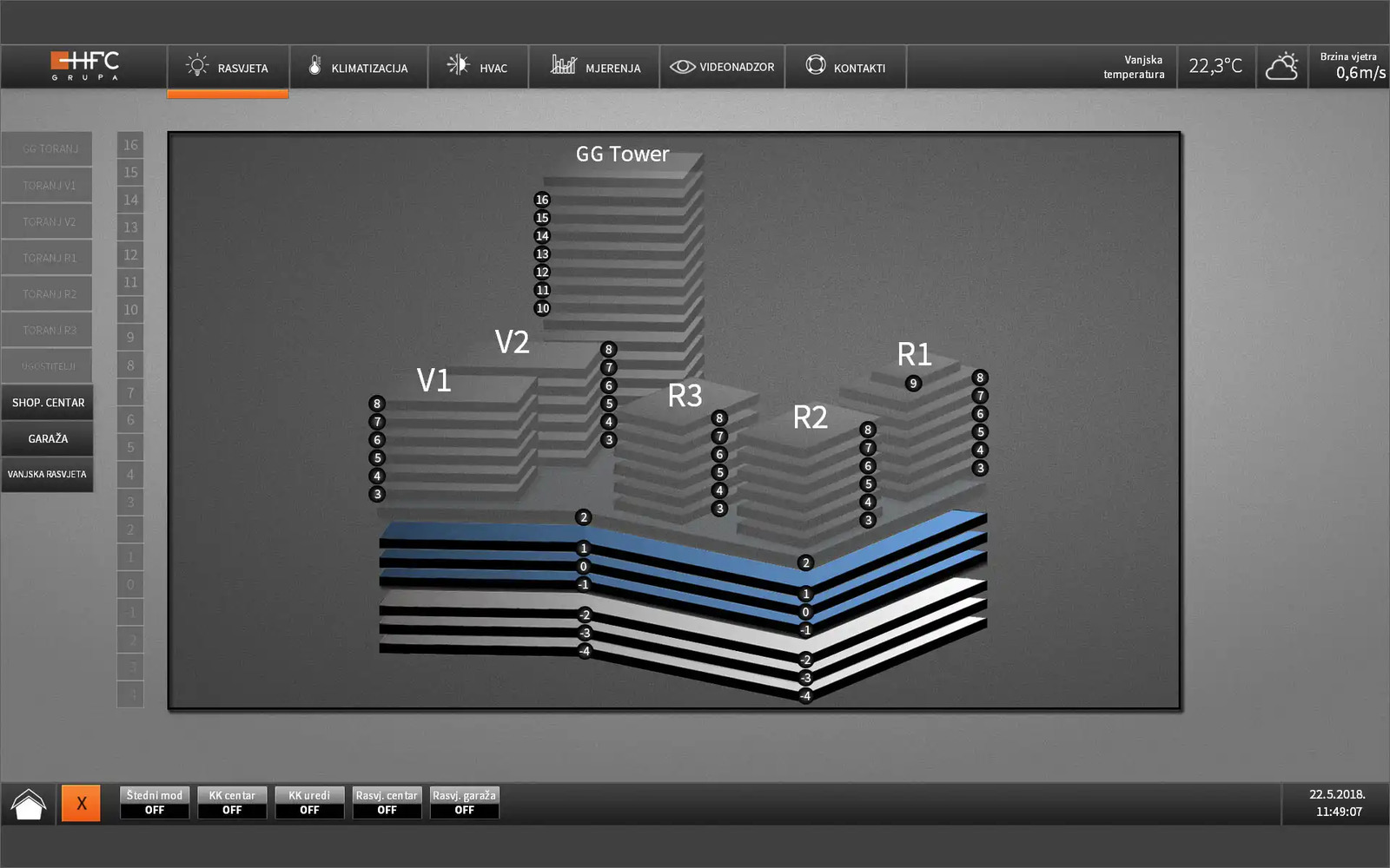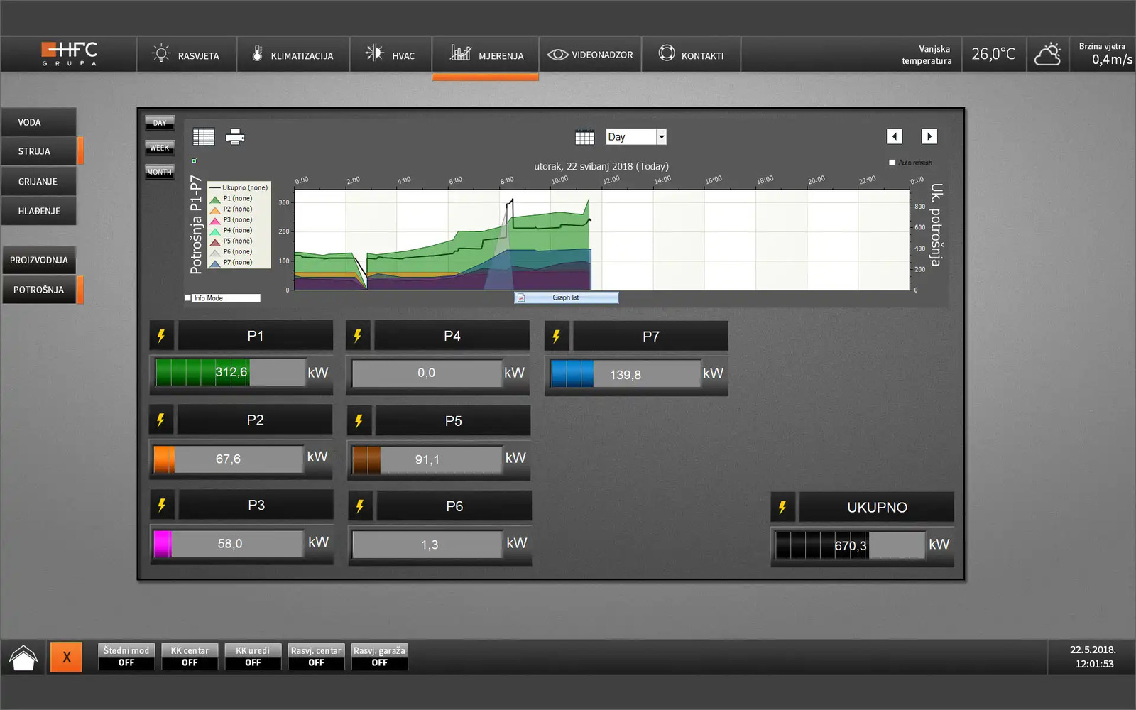 The visualization includes 10,000 elements spread over 95 pages, ensuring comprehensive monitoring and control of all systems. Focused primarily on lighting, the setup enables efficient and intelligent management across the facility.