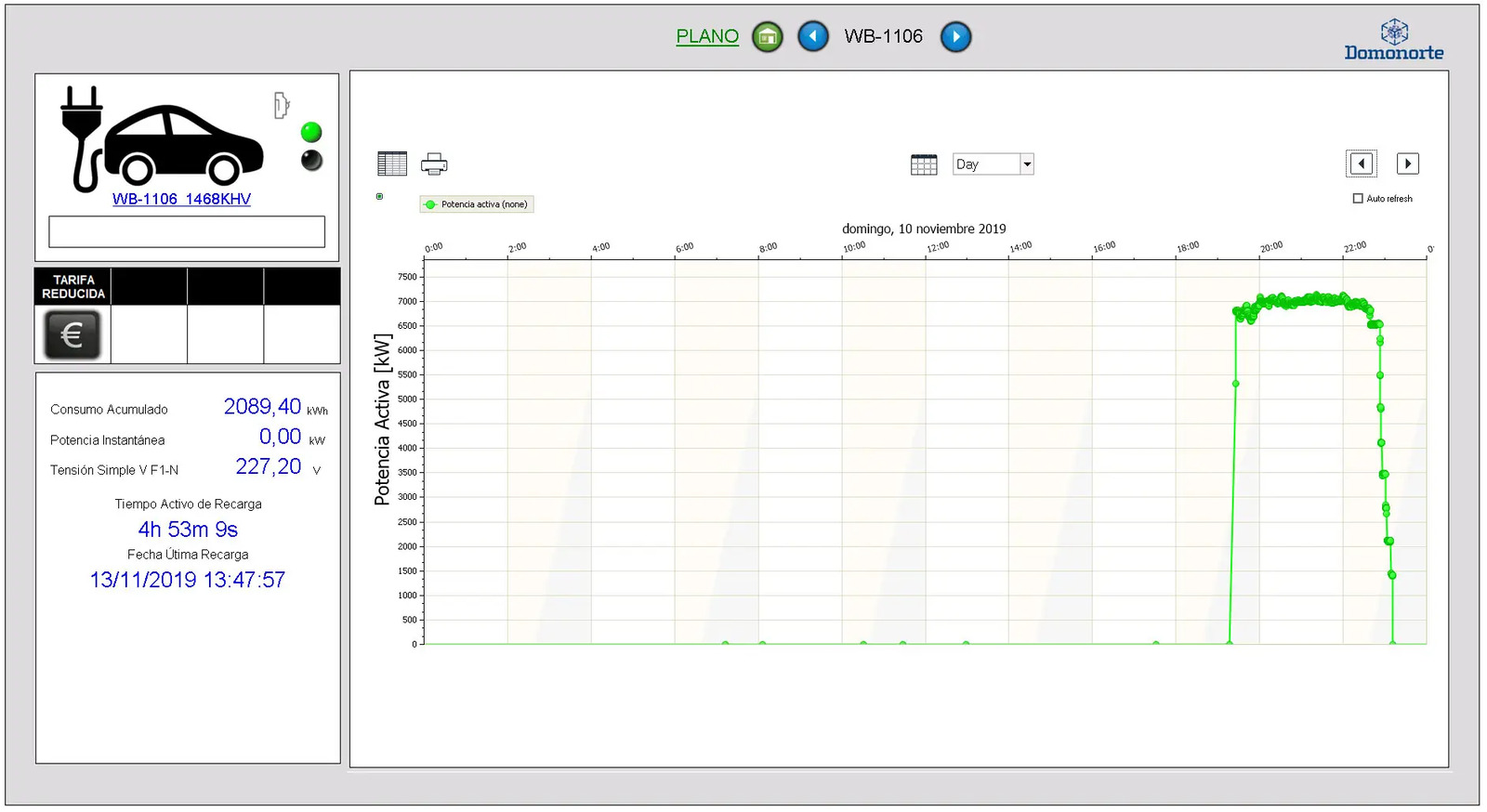 Electrical protections, LAN, Wi-Fi, and a UPS for critical systems are monitored, generating alarms when issues arise. Energy and water usage data is stored in a database and integrated into the client software daily. Vehicle charge status, RFID data, and consumption are sent in real time.