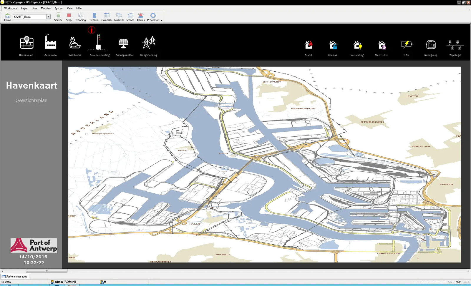 The port features building automation through Domotics KNX for status monitoring and remote control, along with emergency lighting reports compliant with EN50172, UPS systems, and emergency generators. It connects ships to shore power to reduce CO₂ emissions and includes fire and intrusion detection. Electrical cabinets at remote locations are monitored via GPRS connections.