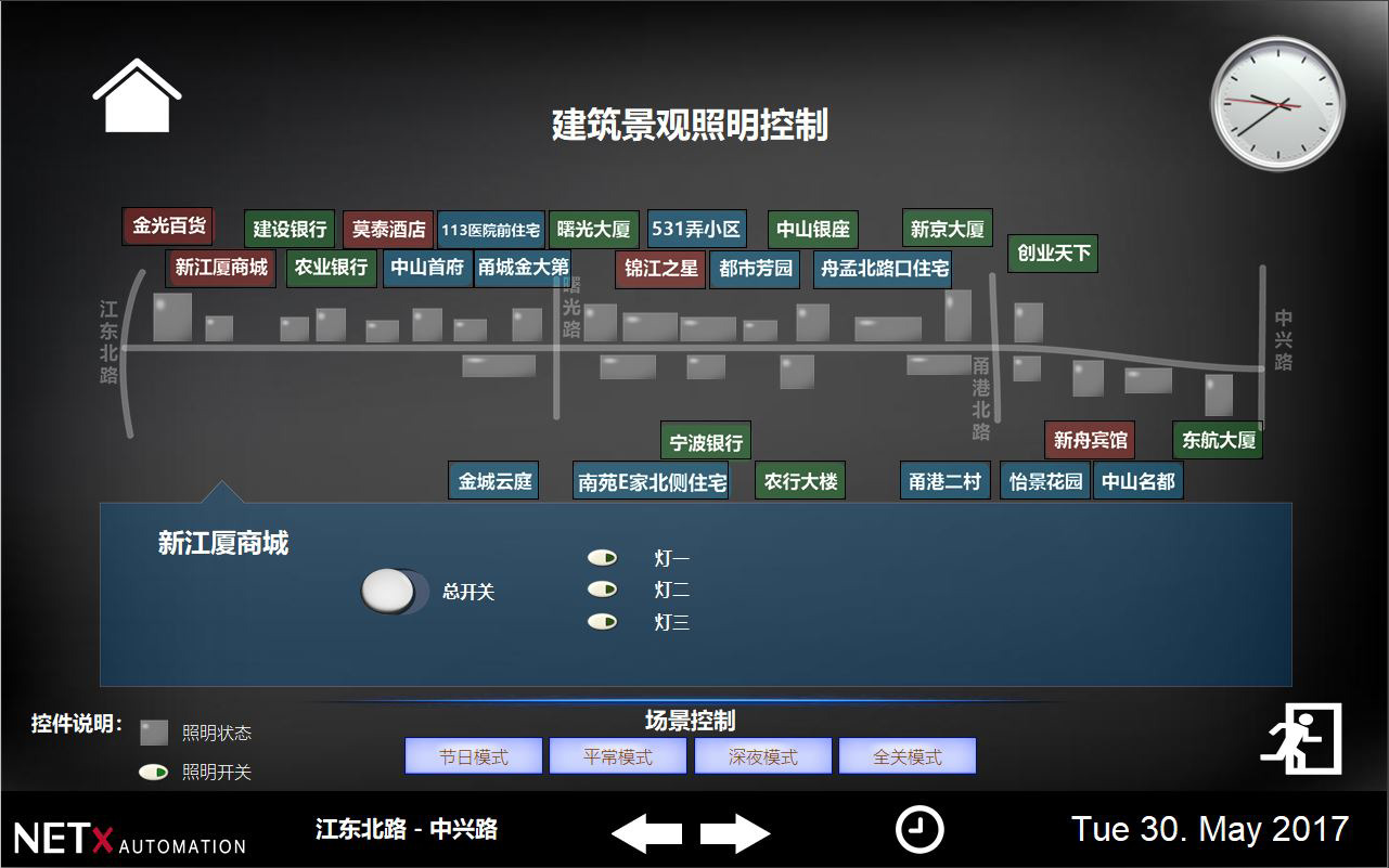 Zhongshan Road is the main urban road in Ningbo, extending from the east of the city to the west. This project is used to control the nighttime landscape lighting of buildings on both sides of Zhongshan Road. There are about 200 buildings, and each building uses an IP gateway. Considering the powerful BMS Server Gateway access capability, so it is very suitable for use in this project.